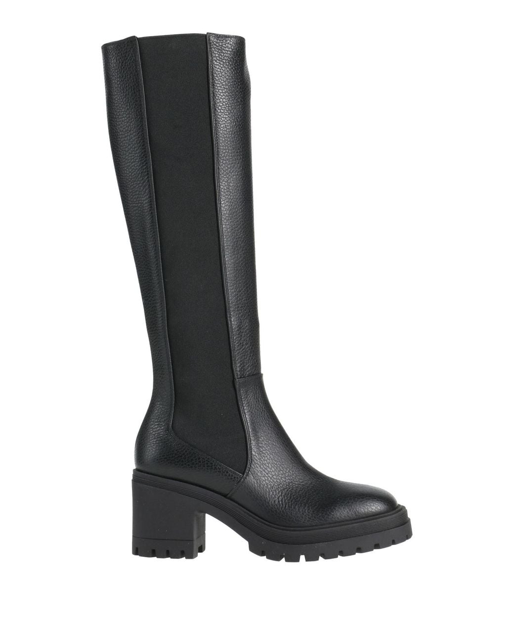 POLLINI. boots, pebbled-leather, no appliqués, plain colour, leather lining, round toe, square heel, lug sole, contains non-textile parts of animal origin. 100% Calfskin.