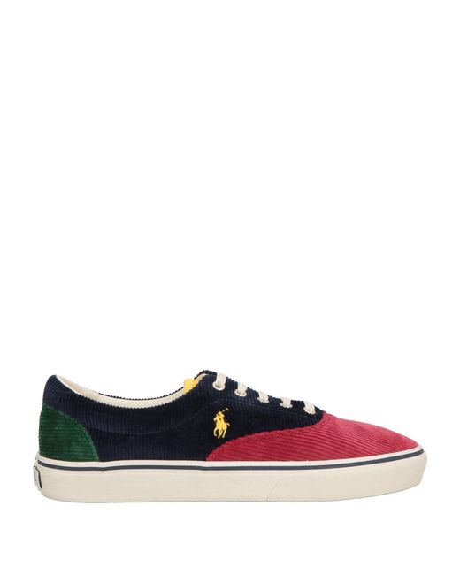 POLO RALPH LAUREN. low-top trainers, corduroy, multicolour, embroidered logo, lace-up, round toe, fabric inner, rubber sole. 100% Textile fibres. Colour: blue