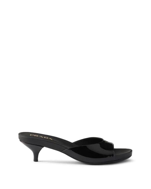 35Mm Patent Leather Mules - Black