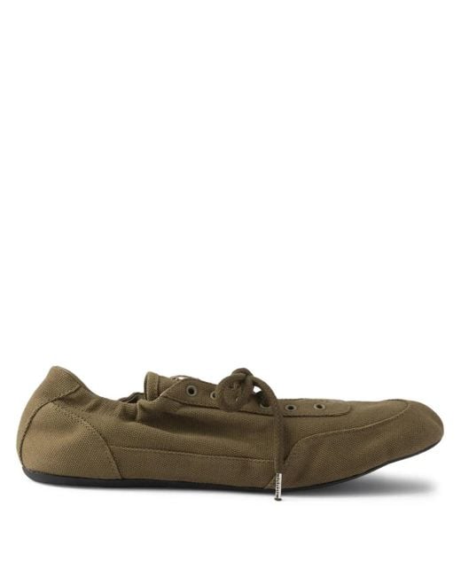 Green canvas lace-up fastening rubber sole round toe Size: 36. Gender: Female. Material:Canvas/Calf Leather/Rubber/Fabric.