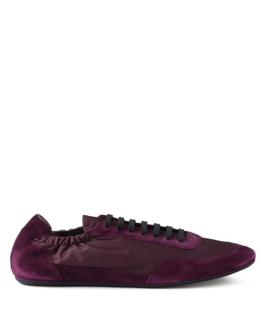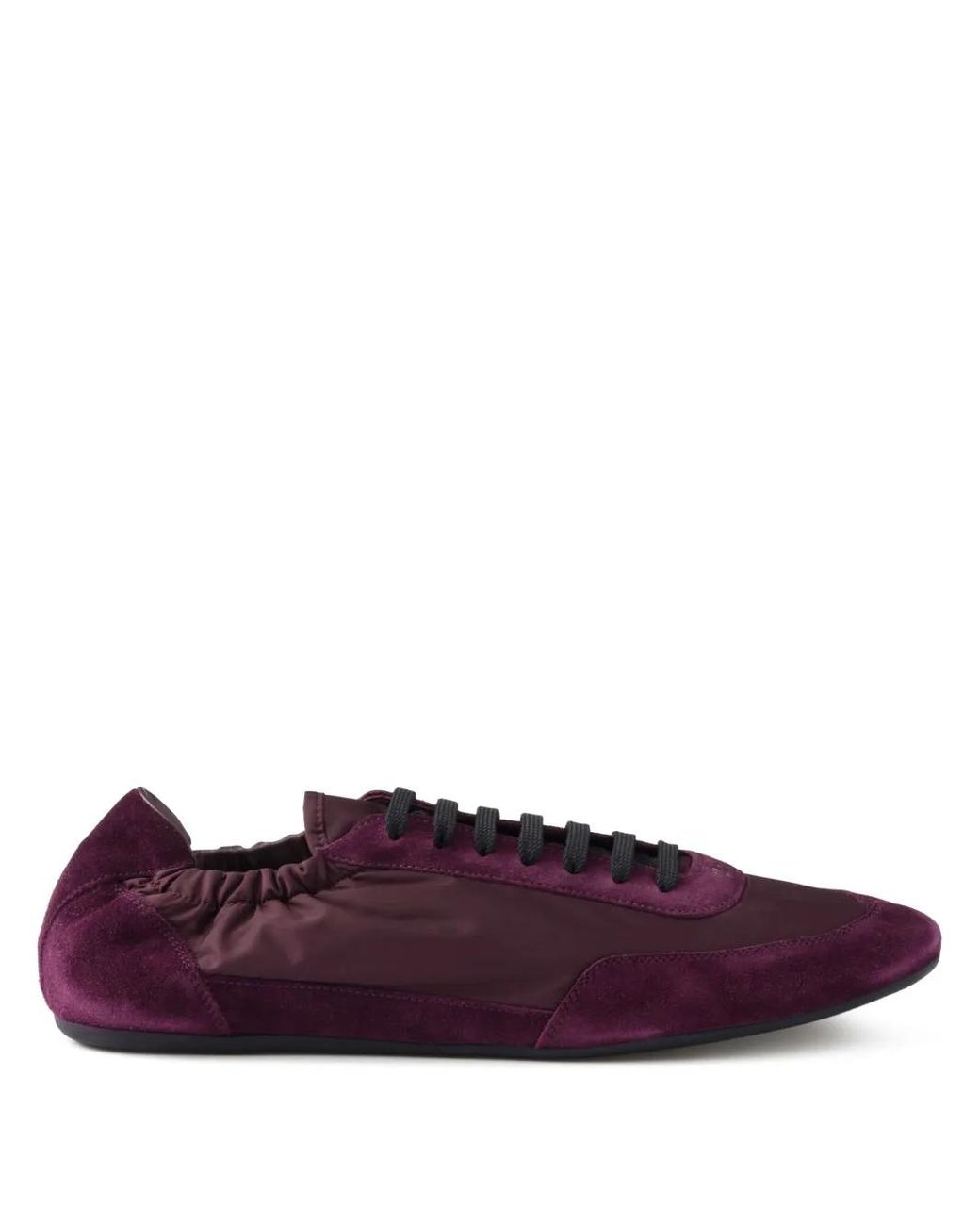 Burgundy front lace-up fastening logo print to the front flat rubber sole branded insole Size: 5.5. Gender: Male. Material:Calf Suede/Rubber/Recycled Polyamide/Fabric/Recycled Polyester/Calf Leather. Colour: purple