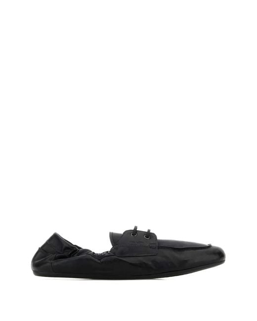 Black leather flat rubber sole lace-up detail round toe elasticated trim slip-on style Size: 6. Gender: Male. Material:Calf Leather/Rubber. Colour: black