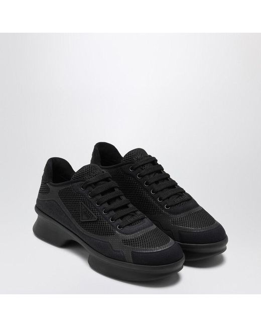 Low-top sneaker in black fabric and mesh, featuring lace-up closure, tone-on-tone logo triangle on the side, logo lettering on the heel tab, and rubber sole.SpecificationValueSeasonSS25Composition100% TEXTILE AND LEATHER MATERIAL / RUBBER SOLEColorBLACKColor CodeF0002Made InITALYISOITDepartmentWomenSectionSHOESSubsectionSNEAKERSSize InformationSHOES ITSize CodeIT