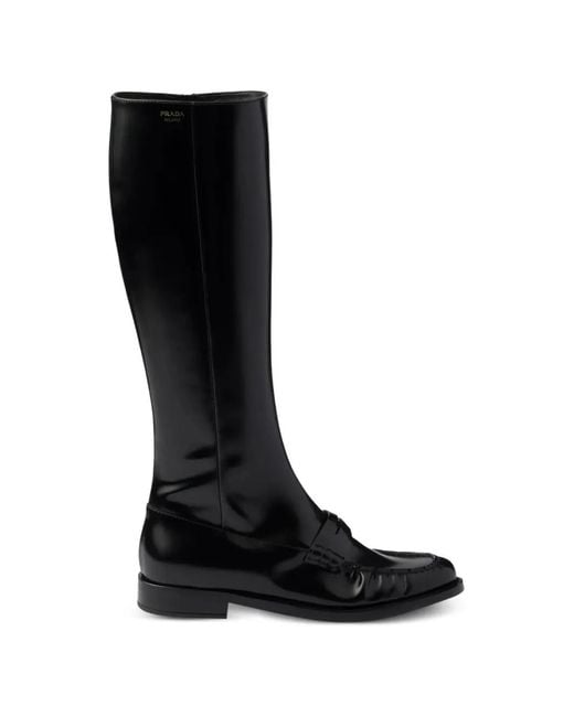 Black knee-high penny slot flat sole round toe slip-on style Size: 37. Gender: Female. Material:Calf Leather/Rubber. Colour: black