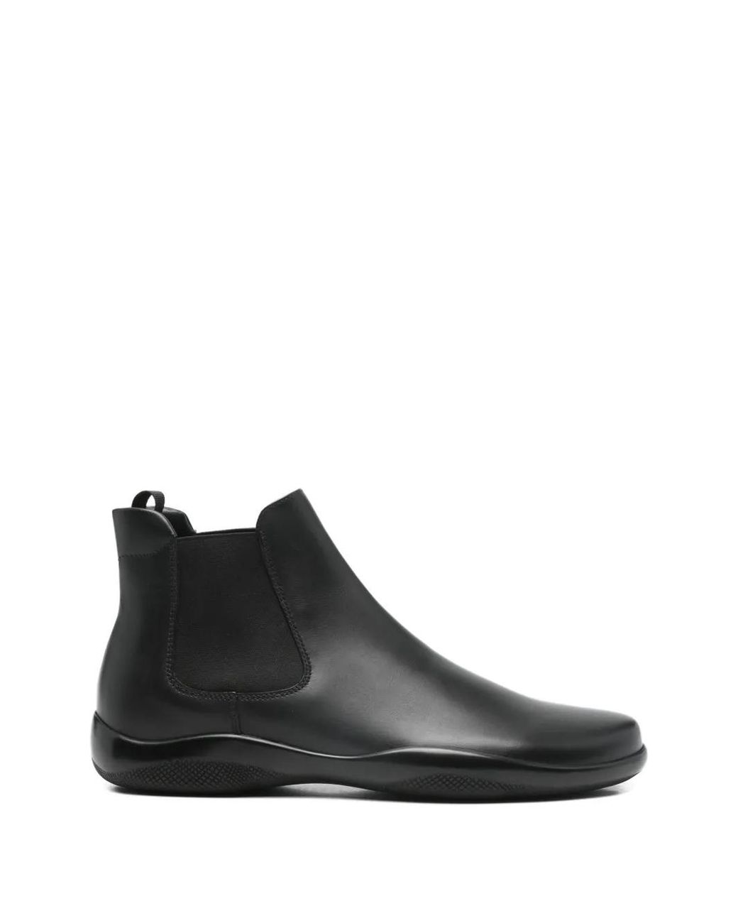 Black leather pull tab at the rear elasticated side panels round toe low heel Size: 6.5. Gender: Male. Material:Calf Leather/Rubber/Calf Leather. Colour: black