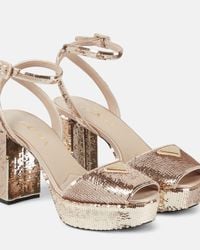 Prada Women's Pink 135Mm Crystal-Studded Platform Sandals