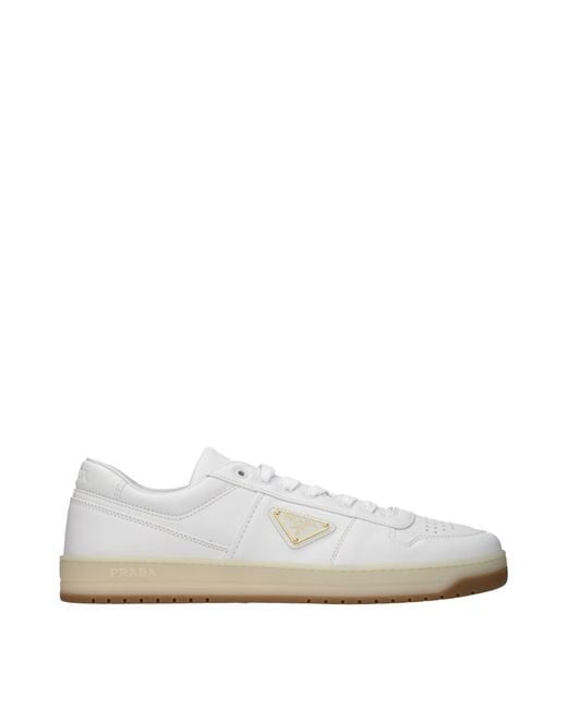 The item with MPN 2EE364EFXD002F0009 and code F86126 in leather of colour white belongs to the trainers category by designer Prada. It features characteristics such as front logo, side logo, rear logo. Colour: white