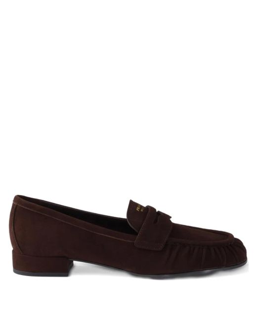 Brand-plaque Wide-strap Suede Loafers - Natural
