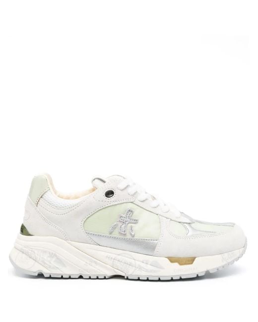 Green/grey leather trim panelled design suede panelling round toe logo patch at the tongue and to the side padded ankle branded leather insole logo at the rubber sole front lace-up fastening Size: 37. Gender: Female. Material:Suede. Colour: white
