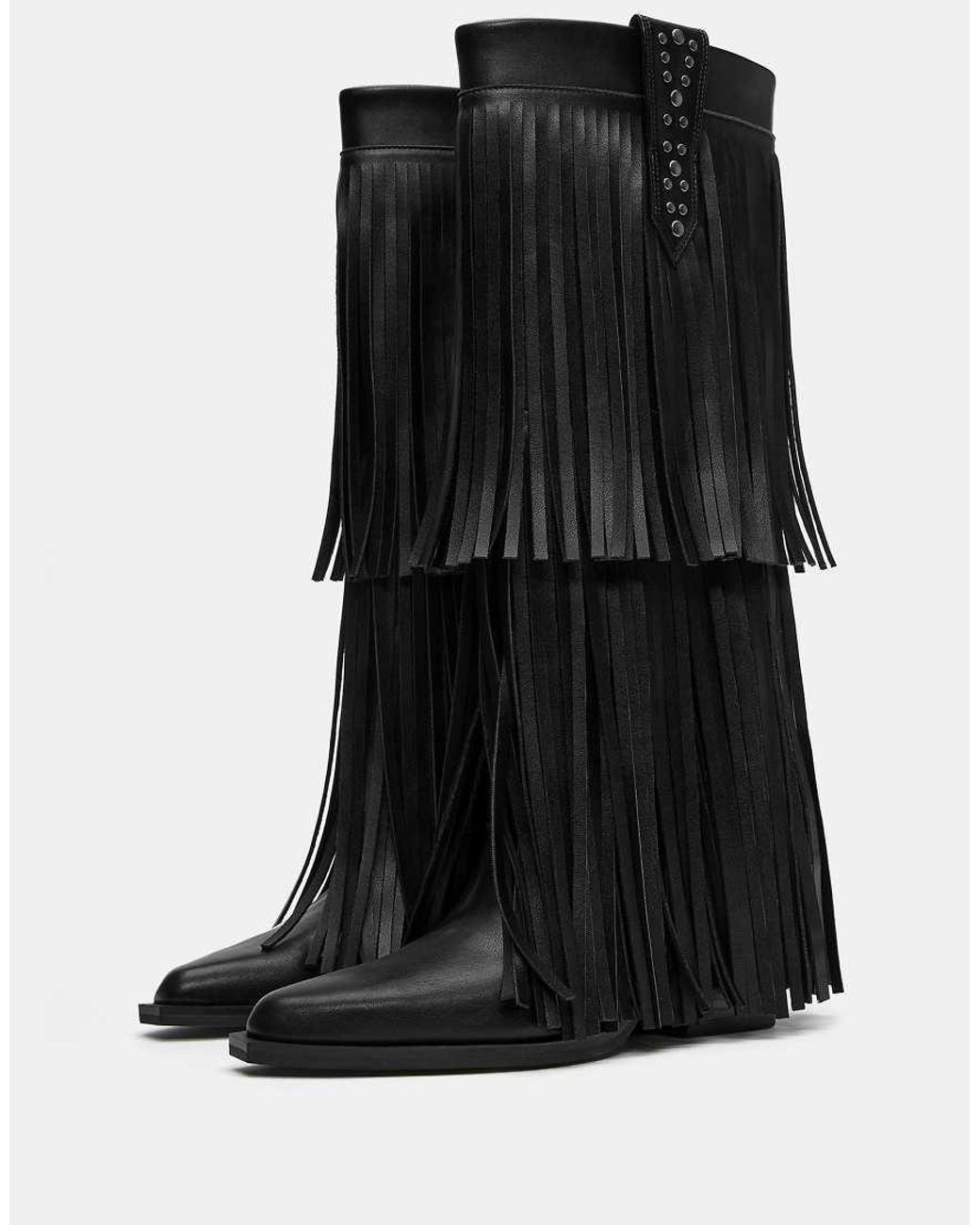 Shoes by Pull&Bear Knee-high style Pull tabs for easy entry Fringed detailing Stud hardware Pointed toe High point heel Colour: black
