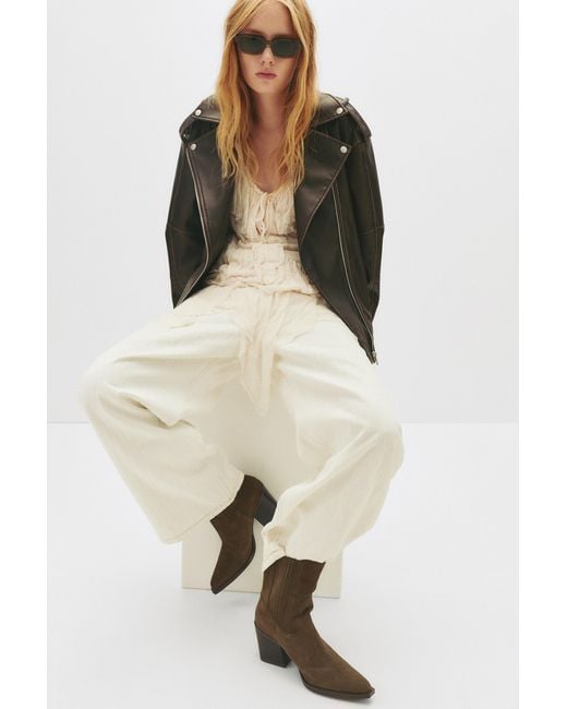 High-heel leather ankle boots with a split suede finish, available in brown. Featuring elasticated inserts on the sides. High heel. Pointed toe. AIRFIT® insoleHeel height: 7.5 cm. Colour: natural
