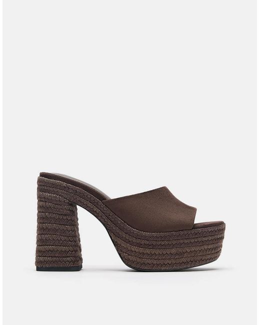 Shoes by Pull&Bear Backless design Open toe Platform sole High block heel. Polyester/Elastane. Colour: brown