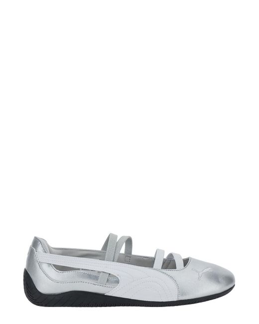 Women's White 'Speedcat' Ballet Shoes With Elastic Band And Logo On Th