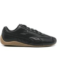 Go to REVOLVEPuma Select Speedcat Faded Trainer in Yellow Suede upper with leather trim and rubber outsole. Lace-up front. Motorsport-inspired low-profile silhouette. Textile lining with IMEVA cushioned midsole. Signature Puma Formstrip in leather, with gold