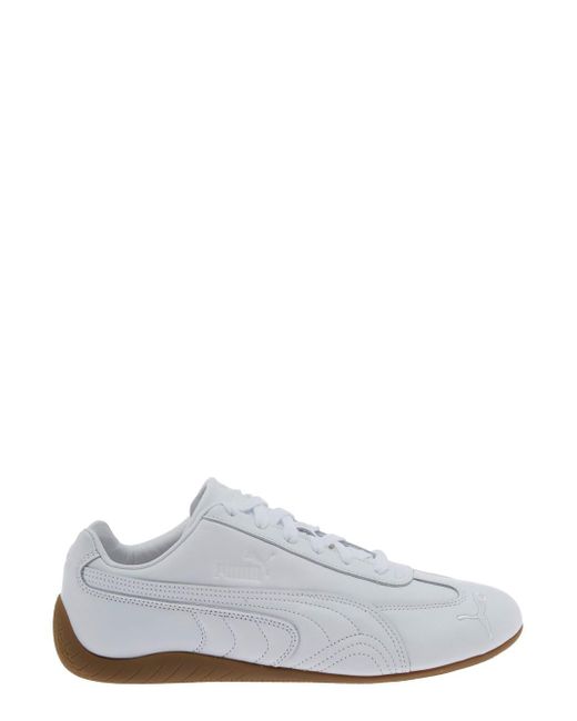 Women's White 'Speedcat' Low Top Trainers With Embossed Logo On The Tongue And Contrasting Sole