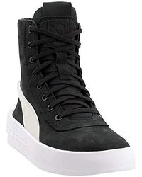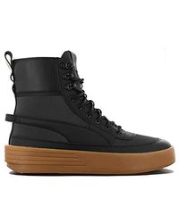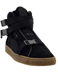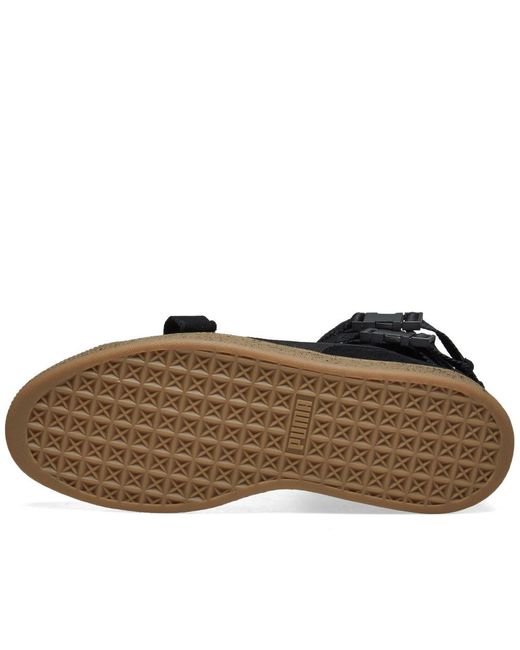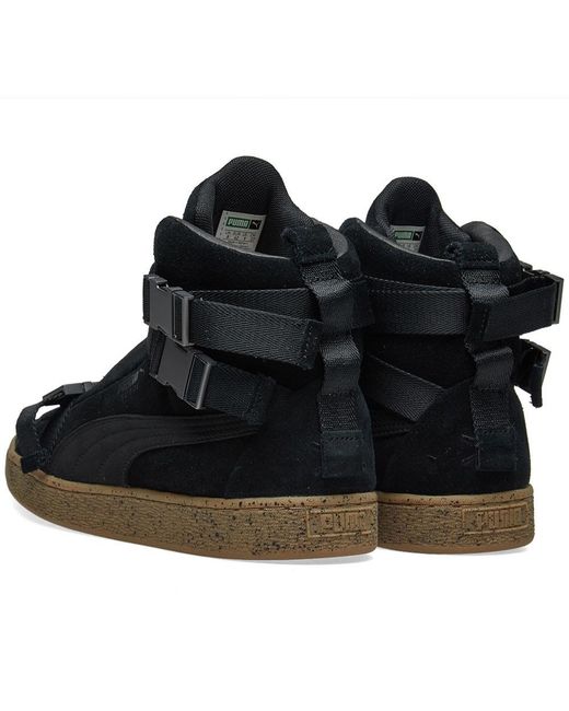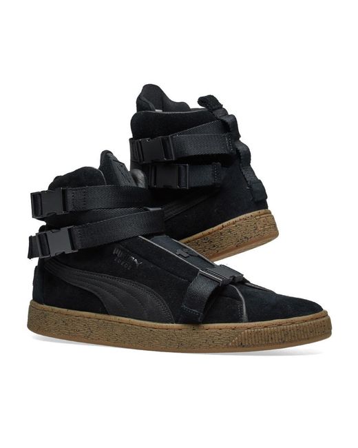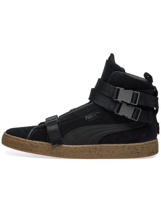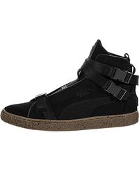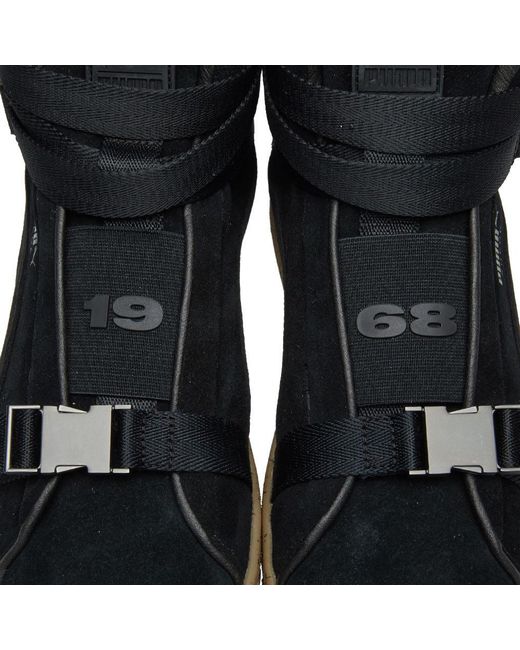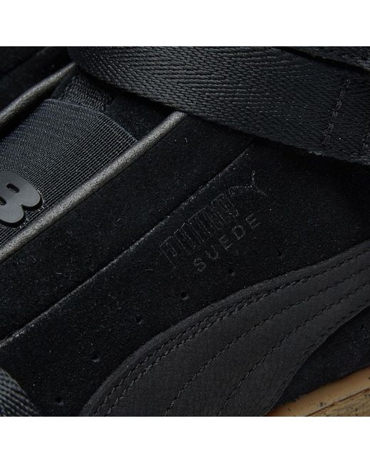 Sit down and strap in for the next chapter of PUMA x The Weeknd legacy. Bulking up the Suede 50 with military-inspired buckles and a high-top design, this all-black version is ready for battle. Addressing its uppers in signature suede, the Canadian singer rewrites the rest. Securely strapped with a mix of buckles and XO branding throughout, Abel, aka The Weeknd, delivers this pair with a speckled gum rubber sole – paying homage to the OG with '19' and '68' referencing the sneaker's creation. Suede Uppers. Buckle Straps. Elasticated Panels. XO Branding. Rubberised '1968' Print. Speckled Midsole. Gum Rubber Outsole. Colour: black