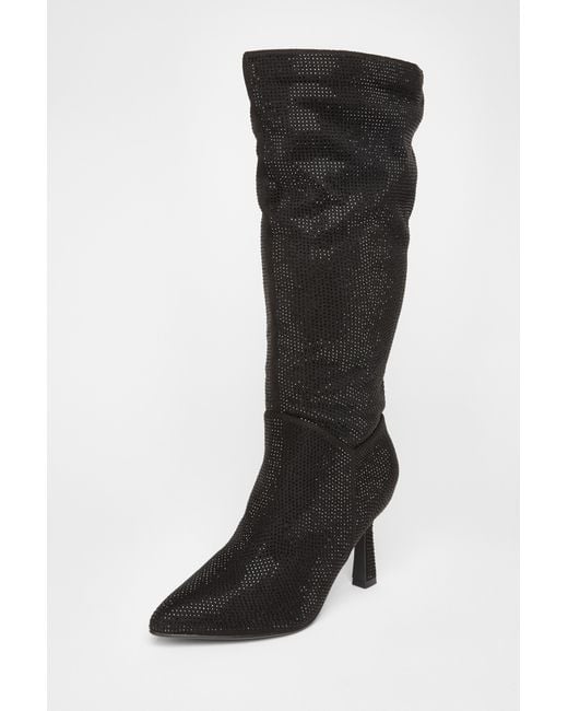 Wide Fit Diamante Faux Suede Ankle Boots - Black