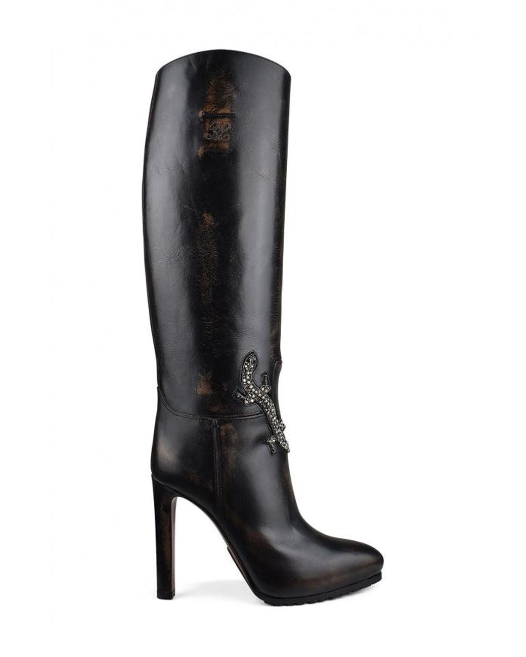 - Sequined Reptile Leather Almond-Toe Boots