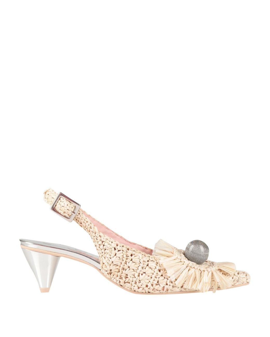 RAS. slingback pumps, raffia, plain colour with appliqués, embellished, leather lining, buckle fastening, pointed toe, cone heel, rubber cleated sole, contains non-textile parts of animal origin. Textile fibres.