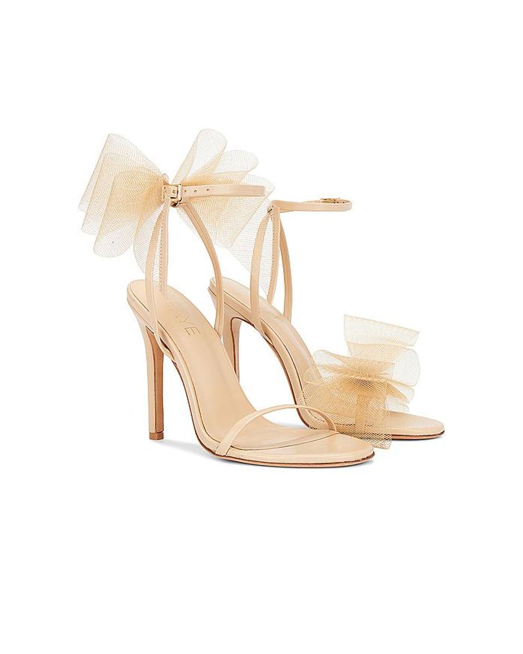 RAYE Bubbly Heel in Nude. Size 10. Also in 5.5, 7, 7.5, 8, 8.5, 9, 9.5. RAYE Bubbly Heel in Nude. Size 5.5, 7, 7.5, 8, 8.5, 9, 9.5. Leather upper with leather sole. Made in China. Ankle buckle closure with mesh bow detail and mesh bow at vamp for opposite foot. Leather footbed and lining. Almond toe with stiletto heel. Mismatched pair. Approx 108mm/ 4.25 inch heel. RAYE-WZ2553. RYSH1340 U23. Inspired by the word Reina, the Spanish word for queen, Raye is the queen bee shoe brand that will surely capture your heart. With an extensive assortment of silhouettes from heels to boots and sandals to flats, Raye has that perfect something for everyone.