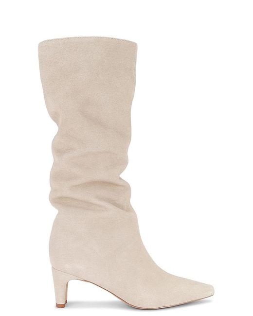RAYE Joplyn Boot in Beige. Size 10. Also in 6.5, 7.5, 8. RAYE Joplyn Boot in Beige. Size 6.5, 7.5, 8. Suede upper with manmade sole. Made in China. Pull-on styling. Leather footbed and lining. Pointed square toe with narrow block heel. Approx 57mm/ 2.25 inch heel Approx 368mm/ 14.5 inch shaft Shaft measures approx 14.13 in circumference. RAYE-WZ2449. RYSH10035 S25. Inspired by the word Reina, the Spanish word for queen, Raye is the queen bee shoe brand that will surely capture your heart. With an extensive assortment of silhouettes from heels to boots and sandals to flats, Raye has that perfect something for everyone. Colour: natural
