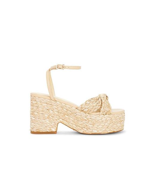 RAYE Lin Sandal in Neutral. Size 10. Also in 6.5, 7, 7.5, 8, 8.5, 9, 9.5. RAYE Lin Sandal in Neutral. Size 6.5, 7, 7.5, 8, 8.5, 9, 9.5. Smooth leather and woven raffia upper with manmade sole. Gold-tone ankle buckle closure. Cushioned leather footbed. Knot accent at vamp. Rounded toe. Approx 90mm/ 3.5 inch heel Approx 45mm/ 1.75 inch platform. RAYE-WZ2857. RYSH1980 S25. Inspired by the word Reina, the Spanish word for queen, Raye is the queen bee shoe brand that will surely capture your heart. With an extensive assortment of silhouettes from heels to boots and sandals to flats, Raye has that perfect something for everyone.