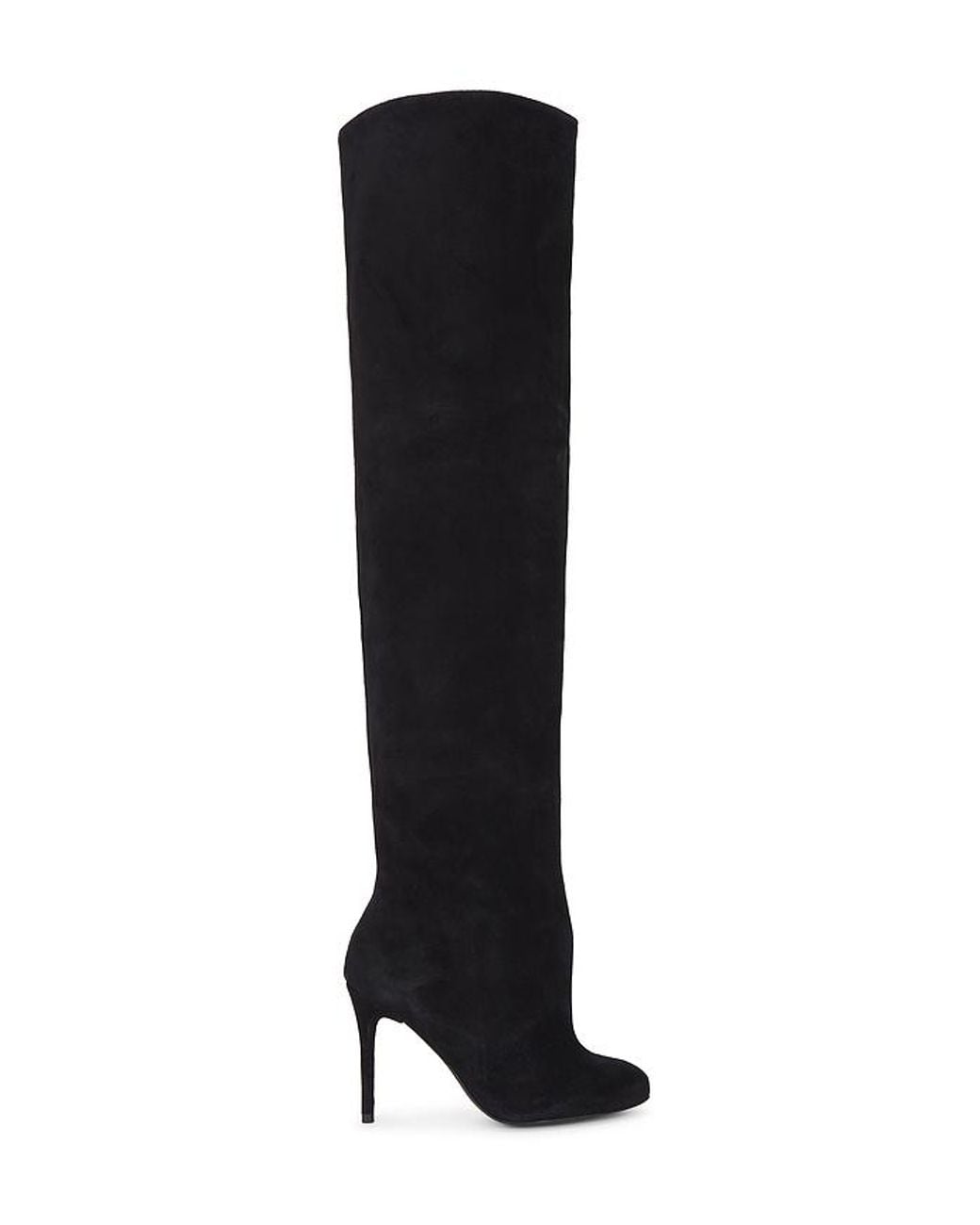 RAYE Quartz Boot in Black. Size 6. Also in 6.5, 7, 7.5, 8, 8.5. RAYE Quartz Boot in Black. Size 6.5, 7, 7.5, 8, 8.5. Suede upper with manmade sole. Made in Brazil. Pull-on styling. Oversize fit at knee. Leather footbed with suede lining. Almond toe. Approx 100mm/ 4 inch heel Approx 711.2mm/ 28 inch shaft Shaft measures approx 29.8 in circumference. RAYE-WZ2964. RYSH10110 H25. Inspired by the word Reina, the Spanish word for queen, Raye is the queen bee shoe brand that will surely capture your heart. With an extensive assortment of silhouettes from heels to boots and sandals to flats, Raye has that perfect something for everyone.