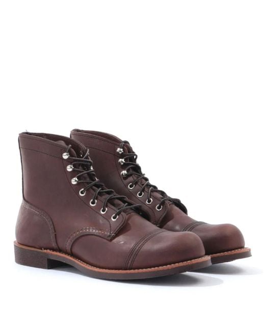 The 8111 Iron Ranger boots are a hard-wearing boot originally designed for Minnesotan iron miners the perfect lifetime piece to add to your collection. Crafted from amber harness leather that is triple-stitched for maximum durability. Featuring a goodyear welt construction and double layered toe cap for extra strength. Finished with subtle Red Wing branding.We recommend dropping half a size to a full size - this is a rough sizing estimate.-Made in the USA-Premium Amber Harness Leather-Vibram Mini-lug Outsole-Seven Eyelet Lace Up-Triple Contrast Stitching-Red Wing Branding Colour: brown
