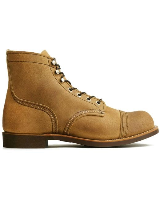 Product Features Part of the Red Wing Heritage collection Hawthorne Muleskinner Leather Uppers Nickel Eyelets and Speed Hooks 48-inch Black and Brown Taslan Laces Contrast and tonal stitch detailing Toe cap Goodyear Welt with triple stitched quality Vibram 430 Mini-Lug Outsole Unlined Made in USA Style Code: 08111 Brand Restrictions At Stuarts Stylist Notes Introducing the Red Wing Heritage 8119 Iron Ranger Boot, a standout piece from this season\'s collection. Crafted with the same robust qualities that made its predecessor famous among the Iron Rangers of Minnesota’s Mesabi Range, this boot is designed to endure the harshest of environments. Made from premium Hawthorne Muleskinner Leather, it offers impressive resistance to water, stains, and perspiration while developing a unique, authentic patina over time. The Iron Ranger Boot boasts a double-layered toe cap for extra durability and rests on a Goodyear Welt with triple-stitch construction. Its Vibram 430 Mini-Lug Outsole ensures exceptional grip and stability, making it ideal for both urban environments and rugged terrains. Finished with subtle yet stylish contrast and tonal stitching, nickel eyelets, and speed lacing hooks, this boot combines timeless craftsmanship with modern functionality. If you seek a boot that exudes both style and performance, the Red Wing Heritage 8119 Iron Ranger is the perfect choice. Colour: brown