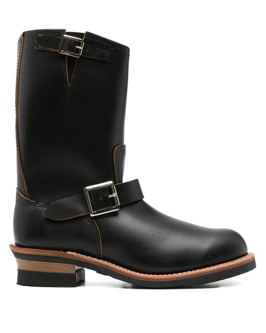 Black side buckle fastening pull tab at the rear round toe stacked heel contrast stitching Size: 8. Gender: Male. Material:Calf Leather/Calf Leather/Neoprene.