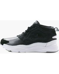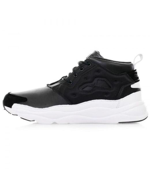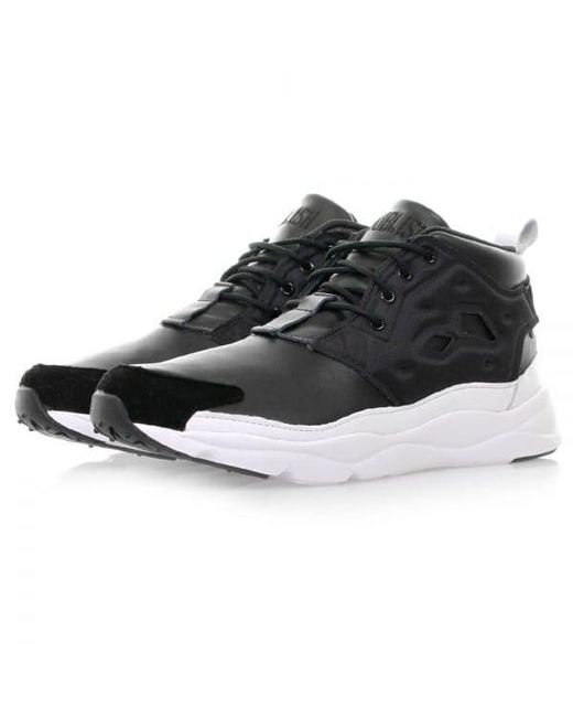 Descended from our iconic Pump Fury, this fashion forward trainer combines cutting edge looks with incredible comfort. Add it to your collection if you're a sneakerhead who loves bold architectural elements and daily wearability. Leather upper for a soft and breathable fit. Low-cut design for added mobility and freedom of movement. Double straps for a secure fit and extra ankle support. Glitzy metallic pops for girly glamorous style. High abrasion rubber outsole for added durability and traction. Leather and neoprene upper. Rubber sole. W/H: 37. Colour: black