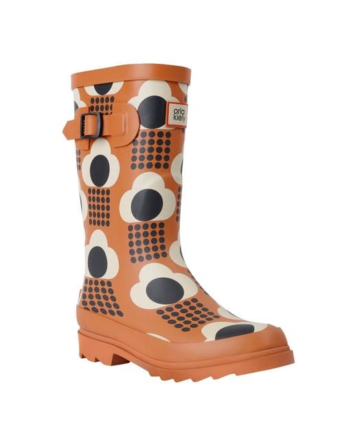 Women's Brown S/ladies Orla Kiely Rain Cloud Mid Calf Wellington Boots