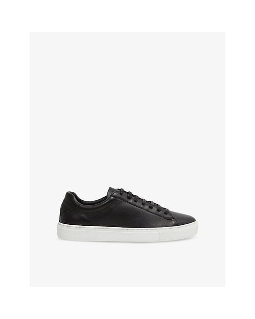 Reiss leather low-top trainersLace-up fasteningLow-top, round closed toe, printed foil logo at back, panelled designSpecialist leather cleanUpper: 100% leatherLining: 65% leather, 35% polyesterSole: 100% rubber Colour: black