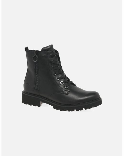 Boost by Remonte are a versatile pair of women's biker boots which feature a variety of different colourways with both smooth and patent leather uppers to choose from. An outer imitation zipper adds detail while lace and zip fastenings secure. Colour: black
