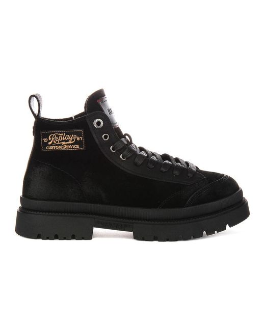 Replay Sandtown Mount 2 Lace-up Ankle Boots from Replay combine a sturdy leather upper with a lugged sole for reliable traction and everyday streetwear style. Key attributes: Black | Leather | Water-repellent | Lugged rubber sole for traction | Lace-up fastening | Padded collar and tongue | Rear pull tab | Round toe | Block heel | Embossed logo and branded patch | Decorative studs | Dimensions & fit: Bootleg height: 4.5" (Size 8). | Bootleg width: 3.5" (Size 9). | Heel height: 2.0" (Size 10.5). | Shoe width: Regular. | Shaft height: Ankle. | Composition & care: Upper: Leather and imitation leather | Lining: 100% polyester | Insole: Nylon | Sole: Synthetics | Treat with a suitable protector before wear. Colour: black