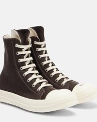 The Rick Owens DRKSHDW Double Bumper Sneaks in cotton hairy fleece showcase the brand's avant-garde edge with architectural details and bold textures. Above ankle height, they feature eight eyelets with laces, an inner