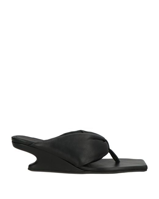 RICK OWENS. thong sandals, leather, plain colour, no appliqués, square toe, wedge, leather lining, leather/rubber sole, contains non-textile parts of animal origin. Leather.