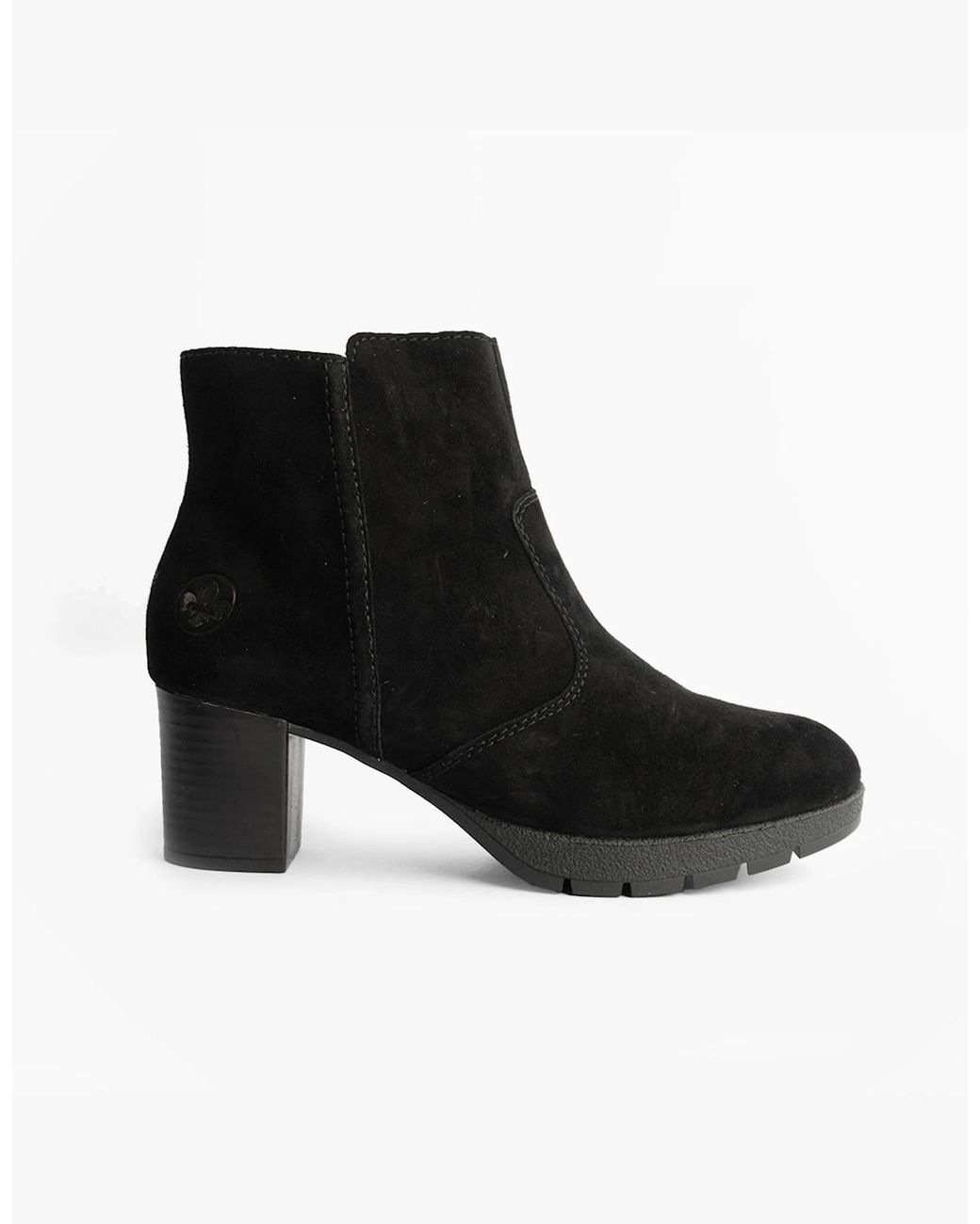 Rieker 77665-00 Womens Boots Black Upper Material: Leather/Suede Lining Material: Textile Sole Material: Rubber Shoe Width: Regular Toe Shape: Round Closure/Fastening: Zip Features: Comfort,Breathable Shoe Shaft Height: Ankle Item Weight: 0.5 KGProduct Code: 77665-00 Colour: black