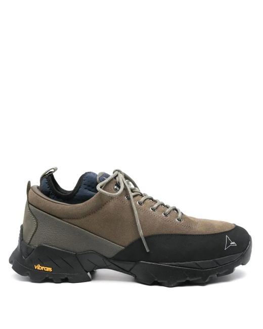 Grey/blue suede panelled design front lace-up fastening layered details pull-tab at the heel elasticated-ankle sock logo-embroidered tongue logo print to the side round toe branded insole Vibram® sole Size: 37. Gender: Unisex. Material:Suede. Colour: brown