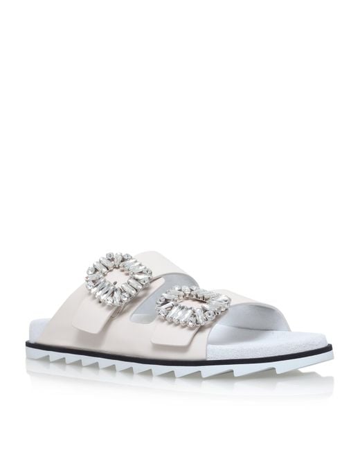 Roger Vivier takes a classic summer slide and reimagines it with elegant detailing. The two-strap design features the brand's signature crystal brooches on each strap and a semi-chunky corrugated sole. Partner with maxi dresses or wide-leg trousers for an effortless look. Colour: white