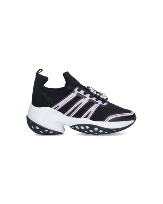 Roger Vivier "Viv Run" sneakers in black fabric with round toe, lace closure with front crystal buckle detail, mesh details, multicolor PVC details on the sides, white rubber sole. - Sole: 100% rubber