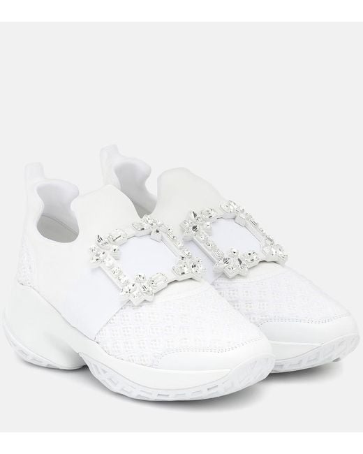 Viv Run Crystal-Embellished Mesh And Leather Slip-On Trainers - White