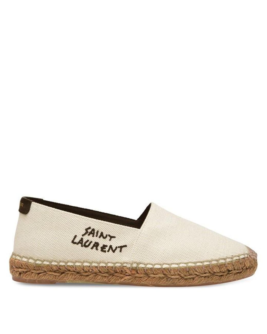 These Saint Laurent Canvas Espadrilles are a must-have addition to your Spring/Summer wardrobe. Constructed with jute midsole, with rubber sole, these canvas shoes are designed with contrasting Saint Laurent embroidery to the side and finished with the brands signature embossed to the heel tab for instant brand recognition. Size selection: British sizing (European sizing) Fits true to size, take your normal size 48% Cotton, 48% Linen, 4% Polyurethane Midsole: jute Sole: rubber.