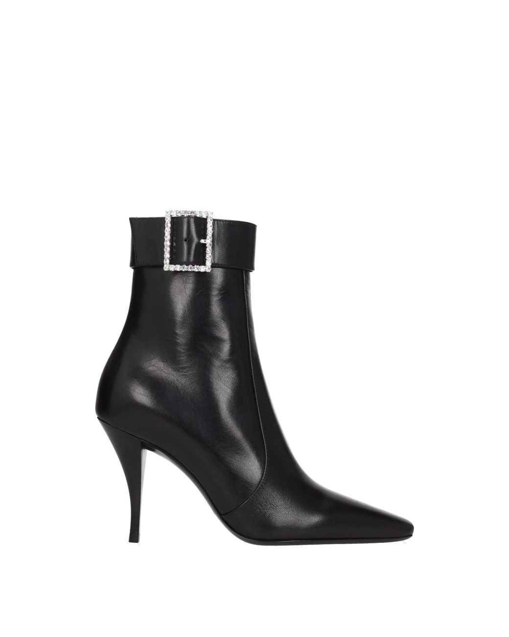 The item with MPN 716726AAAZZ1000 and code F75981 in leather of black color belongs to the ankle boots category by designer Saint Laurent. It features characteristics such as vintage effect, rhinestones.