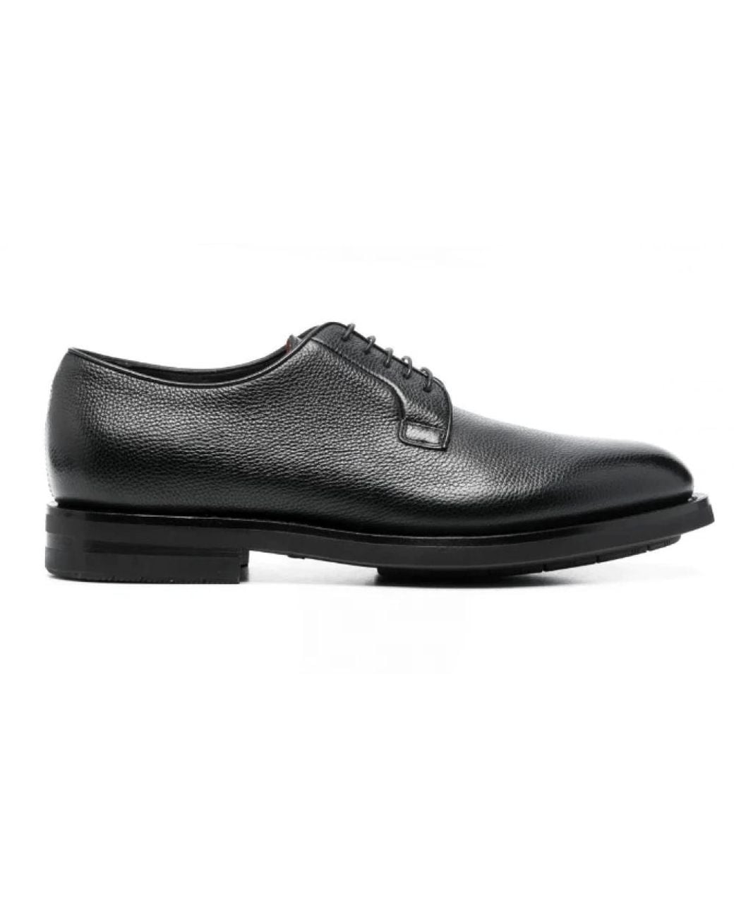 Step up your business attire with these Santoni Mens Black Calf Leather Business Shoes. Crafted from premium calf leather, these shoes feature a sleek almond toe and a front lace-up fastening for a sophisticated look. The leather lining and branded insole provide ultimate comfort, while the rubber sole ensures durability and traction. Perfect for the modern gentleman, these business shoes are a timeless addition to your wardrobe. Colour: black