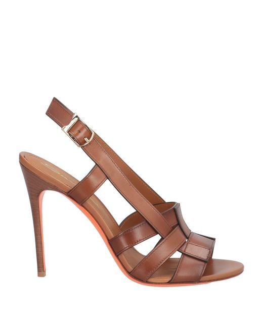 SANTONI. ankle strap sandals, leather, plain colour, no appliqués, leather lining, buckle fastening, round toe, stiletto heel, leather sole, contains non-textile parts of animal origin, large sized. Leather.