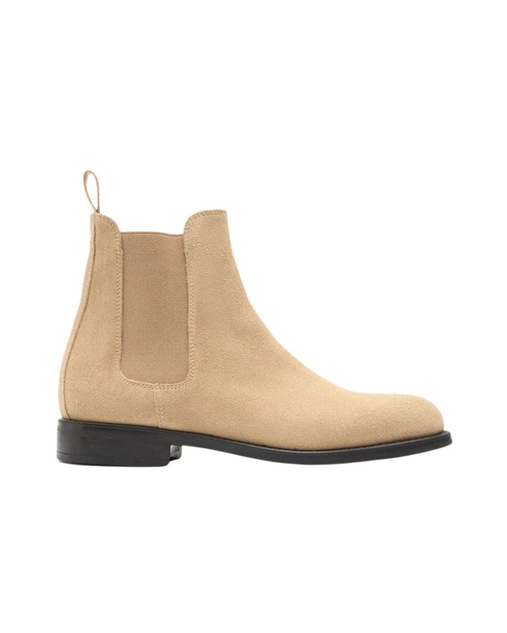 Scarosso's Claudia Chelsea Boots are tapered suede Chelsea boots made in Italy, built for everyday wear with a low rubber heel and an easy pull-on fit. Key attributes: Beige | Beige Suede | Suede | Rubber sole | Elasticated side panels | Pull-tab at heel | Pull-on design | Tapered silhouette | Blake construction | Round toe | Dimensions & fit: Heel height: 2.5 cm | Fits true to size; take your usual size. | Composition & care: Outer: Calf suede 100% | Lining: Calf leather 100% | Sole: Rubber 100%