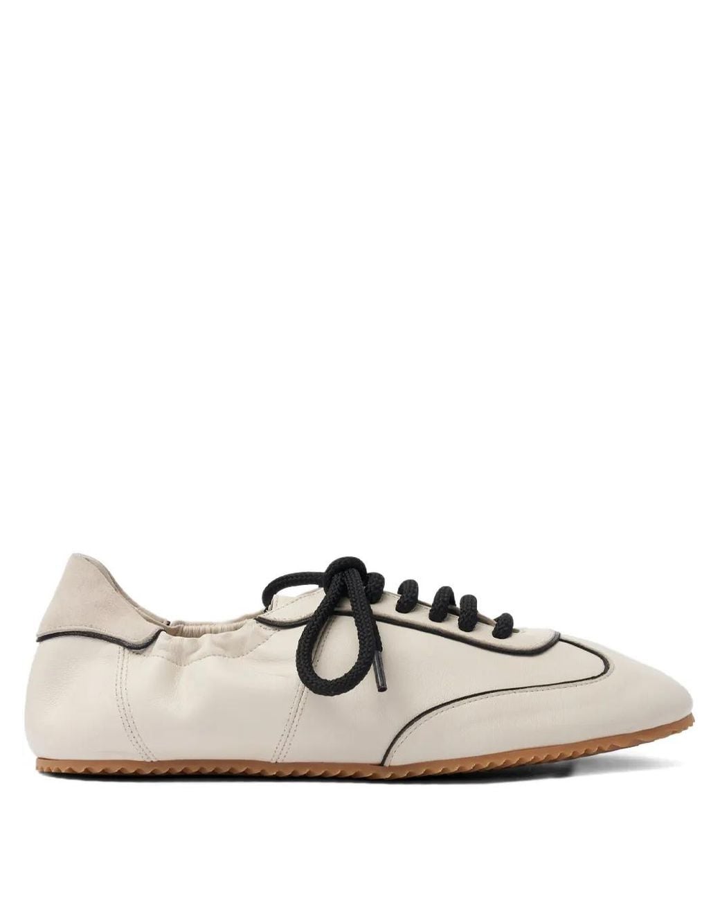 Ecru front lace-up fastening flat sole branded insole contrast stitching Size: 35. Gender: Female. Material:Calf Suede/Calf Leather/Rubber/Calf Leather. Colour: white