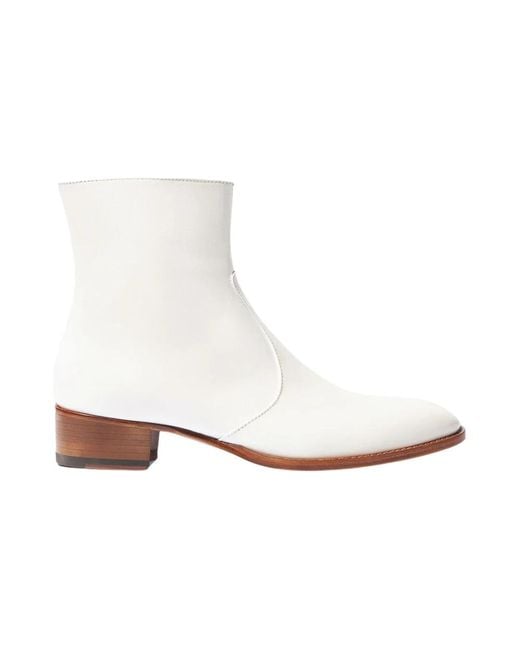 Step out in style with the Warren White Ankle Boots by Scarosso, a standout piece from a special capsule collection designed with stylist Warren Alfie Baker. These Italian-made boots feature an almond toe and front stitches, complemented by zipped sides for easy wear. Key attributes: White | Calf | White | Calf Leather | Zipped sides | Almond toe | Front stitches | Cuban heel | Dimensions & fit: Regular fit | Composition & care: Calf Leather | Not specified