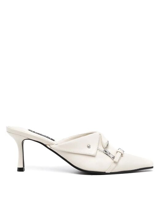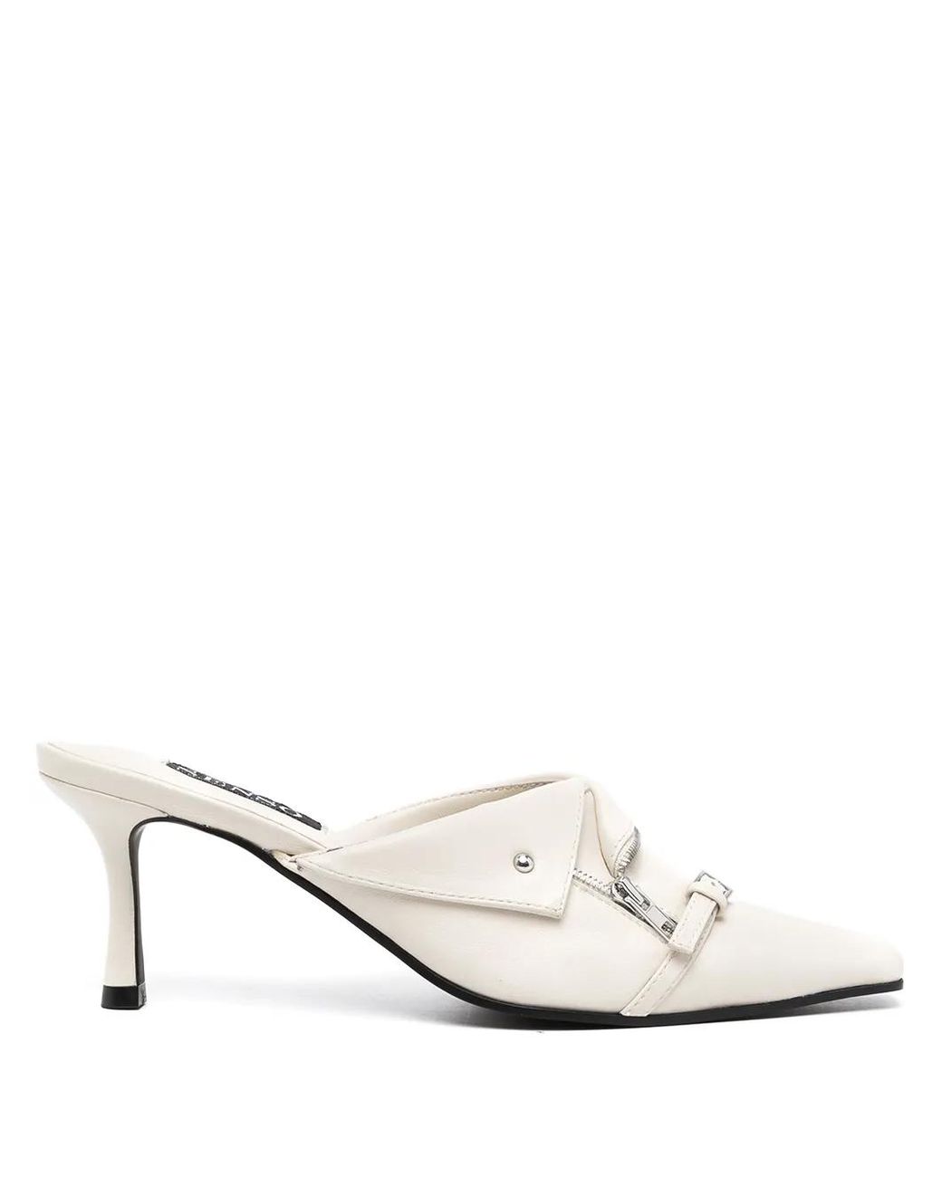 Ice white kid leather decorative zip detailing buckle detail at the toe silver-tone stud detailing square toe branded leather insole slip-on style backless kitten heel Size: 42. Gender: Female. Material:Kid Leather/Kid Leather/Resin. Colour: multicolour